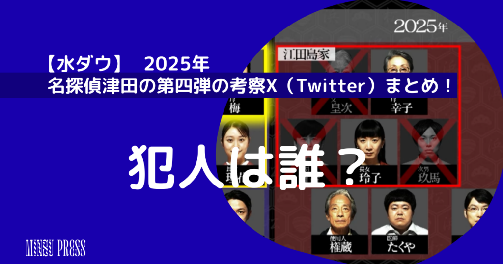 【水ダウ】名探偵津田の第四弾の考察X(Twitter)まとめ!犯人は誰?