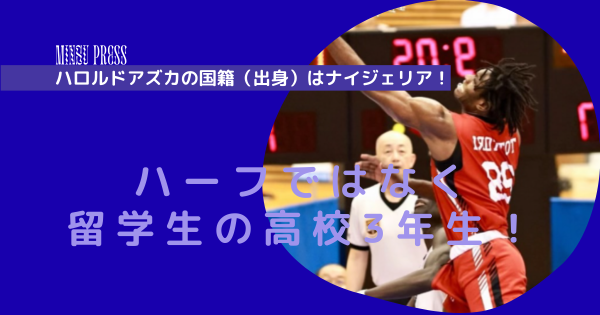 ハロルド・アズカ選手はナイジェリア出身の留学生であり、日本国籍を持つハーフ選手ではありません。