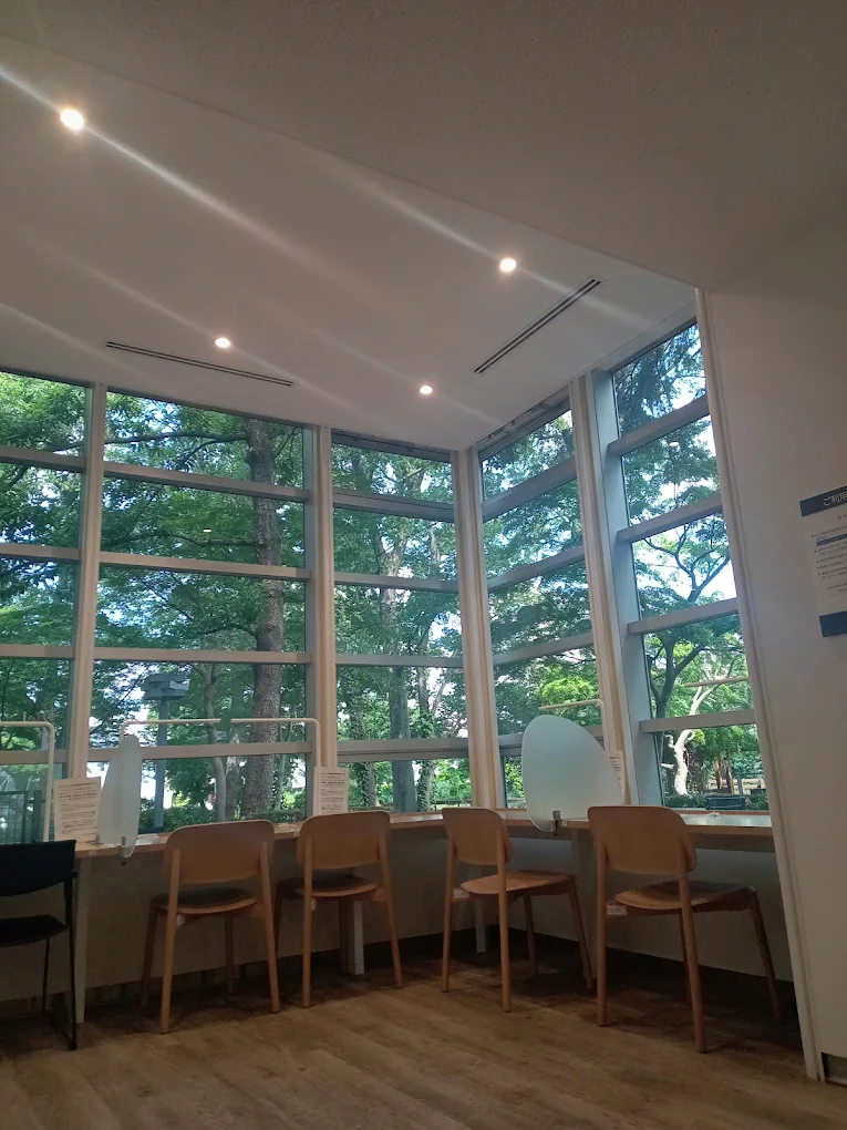 杉並区立中央図書館は、荻窪八幡神社や善福寺川緑地のそばにあり、自然に囲まれた落ち着いたエリアに位置しています。