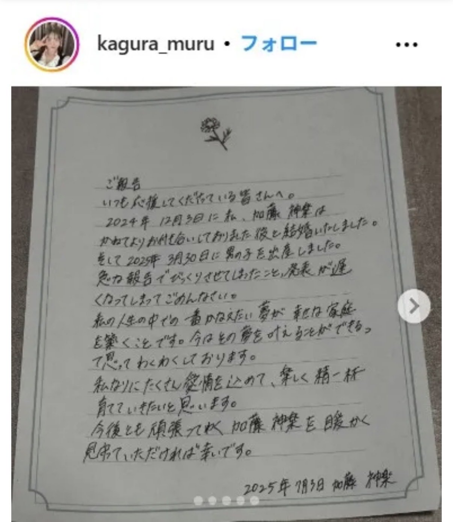 をSNSで公表し、若くして母親になっていたことも話題になりました。