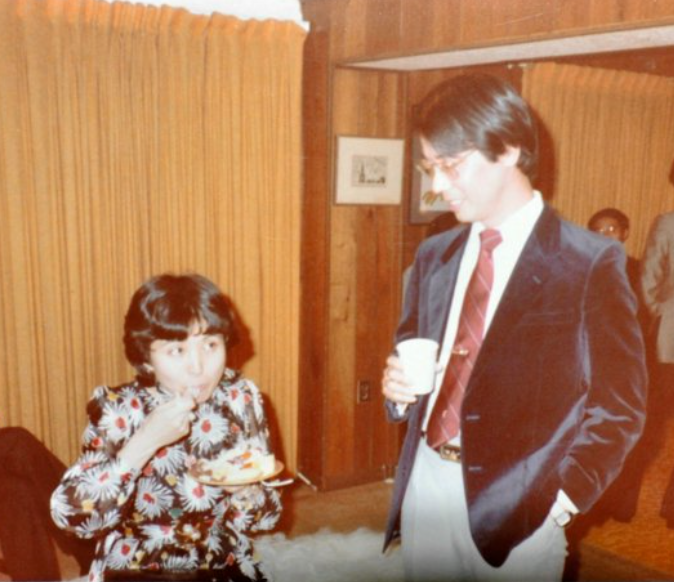 1980年代の 左:妻・教子さん 右:坂口志文さん