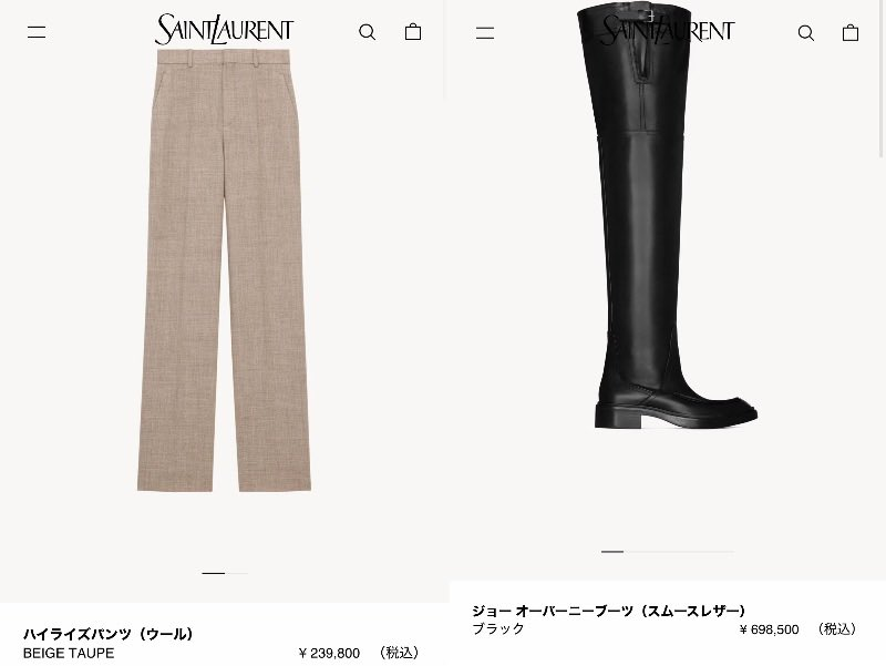サンローランのハイエンドジャケットだけでも数十万円〜100万円を超える価格帯が普通です。